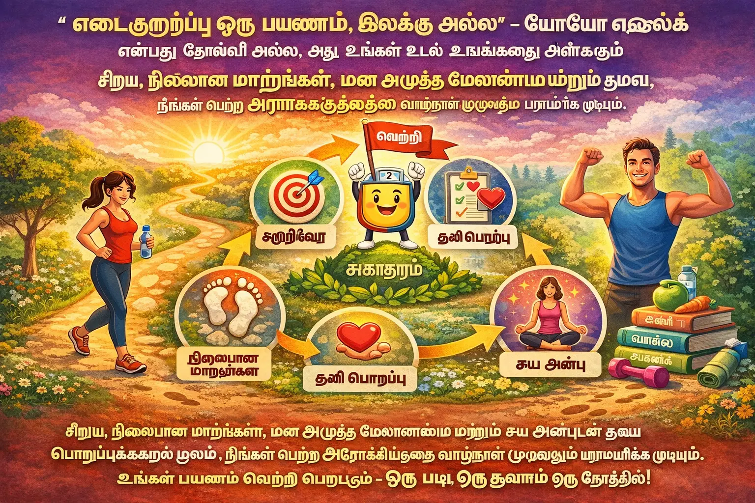 🎯 முக்கிய கருத்து: எடை குறைப்பதை விட, அதை நீண்டகாலம் பராமரிப்பது மிக முக்கியம். யோயோ எஃபெக்ட் (மீண்டும் எடை ஏறுதல்) தவிர்த்து, வாழ்க்கை முறை மாற்றங்கள் மூலம் நிரந்தர ஃபிட்னெஸ் பெறுவதற்கான விஞ்ஞான வழிமுறைகள் இங்கே!